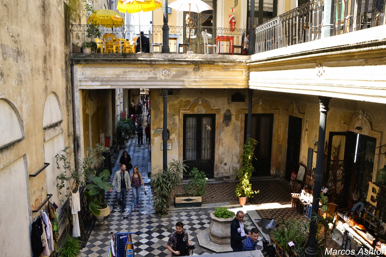 Ubicada a media cuadra de la Plaza Dorrego, la “Casa de los Ezeiza” es una de las residencias históricas más importantes del barrio. Construida en la década de 1880, sobrevivió a la fiebre amarilla, fue conventillo y hoy es una popular galería comercial y paseo de compras, conservando su arquitectura italianizante y sus tres patios originales.