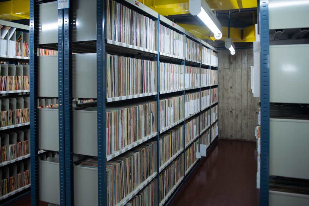 Desde 2003, en la Biblioteca Nacional Mariano Moreno funciona una audioteca. La sala, bautizada Gustavo “Cuchi” Leguizamón, Cuenta con 50.000 discos analógicos, unos 129 acetatos, más de 3500 discos de pasta, unos 30.000 discos larga duración de vinilo y unos 10.800 simples, aproximadamente. Entre las grabaciones sonoras magnéticas se hallan unas 520 cintas abiertas de audio, más de 9000 casetes de audio y unos 1287 magazines. En cuanto a las grabaciones sonoras digitales la colección de discos ópticos alcanza la cantidad de más de 20.000 ejemplares de CD’s.