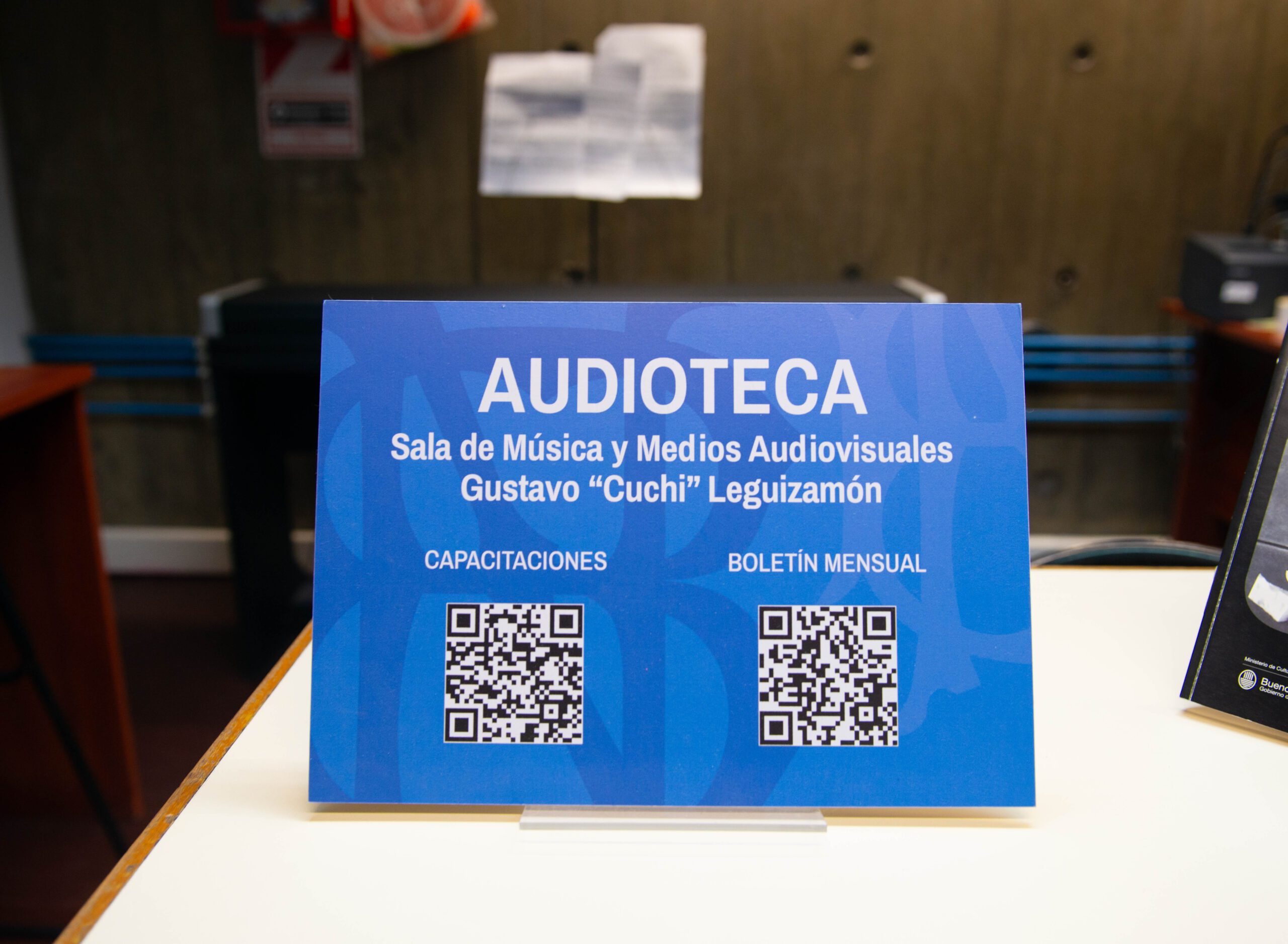 Desde 2003, en la Biblioteca Nacional Mariano Moreno funciona una audioteca. La sala, bautizada Gustavo “Cuchi” Leguizamón, Cuenta con 50.000 discos analógicos, unos 129 acetatos, más de 3500 discos de pasta, unos 30.000 discos larga duración de vinilo y unos 10.800 simples, aproximadamente. Entre las grabaciones sonoras magnéticas se hallan unas 520 cintas abiertas de audio, más de 9000 casetes de audio y unos 1287 magazines. En cuanto a las grabaciones sonoras digitales la colección de discos ópticos alcanza la cantidad de más de 20.000 ejemplares de CD’s.